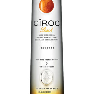 A: Cîroc Peach uses the standard Cîroc vodka base — distilled five times from fine French grapes (not grain or potato) — giving it a smooth, refined foundation. The vodka is then infused with natural peach and orchard‑fruit flavors to create the Peach variant. (CÎROC)